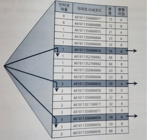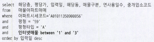 ┖ 인터넷 매물이 BETWEEN조건이지만 선행컬럼들이 모두 '='조건이기 때문에 전혀 비효율없이 조건을 만족하는 데이터를 찾는다.